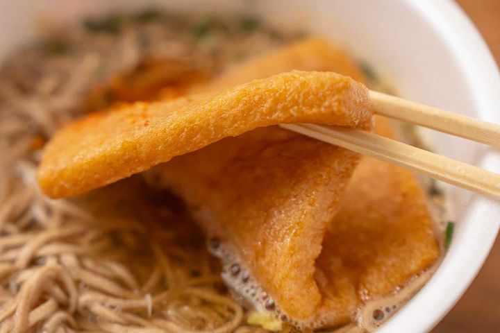 だしのきいたつゆは、しっかりとうまみがありつつも上品な味わいで、口当たりのよいそばとベストマッチ。定番商品の赤いどん兵衛だと、ここにサクサクの天ぷらがのっていますが、今回はおあげです。噛むたびにじゅわっと甘い味わいが広がるおあげと、そばの組み合わせは文句なしのおいしさですね。
