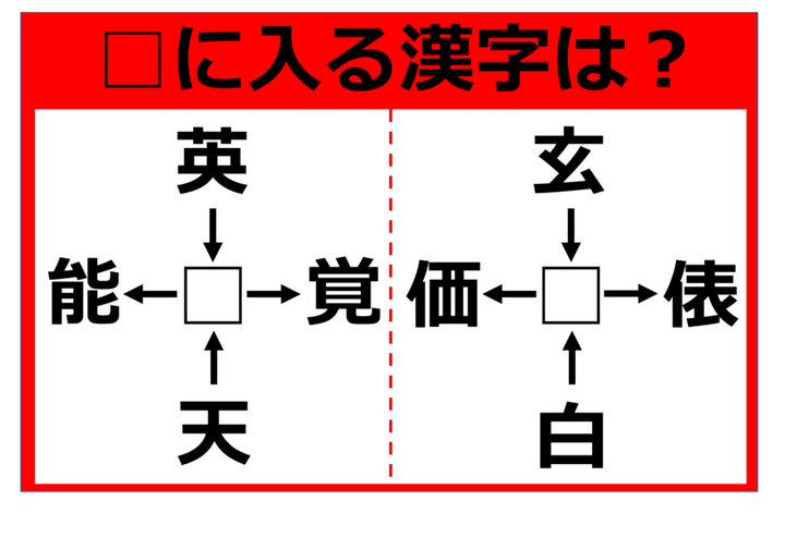 3. 【漢字クロスワードパズル】□に入る漢字は何!? 英□、□覚、天□、□能・・・!?