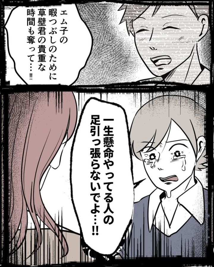 ちなきちさんは自分の勉強時間も恋もエム子に邪魔されているというのに、エム子は「草壁くんには興味ない」「ちななら暇そうで構ってくれると思ったから」と不愉快極まりないことを言う。