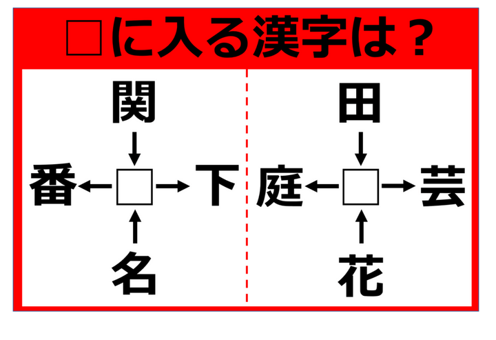 様々な角度から眺めてみて!【漢字クイズ】関□、□下、名□、□番・・・!?