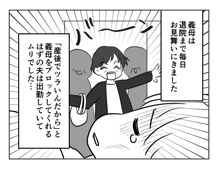 3. 【ノンデリ義母「陣痛見せて!」】毎日お見舞いに来る義母「全然休めない…」#4コマ母道場