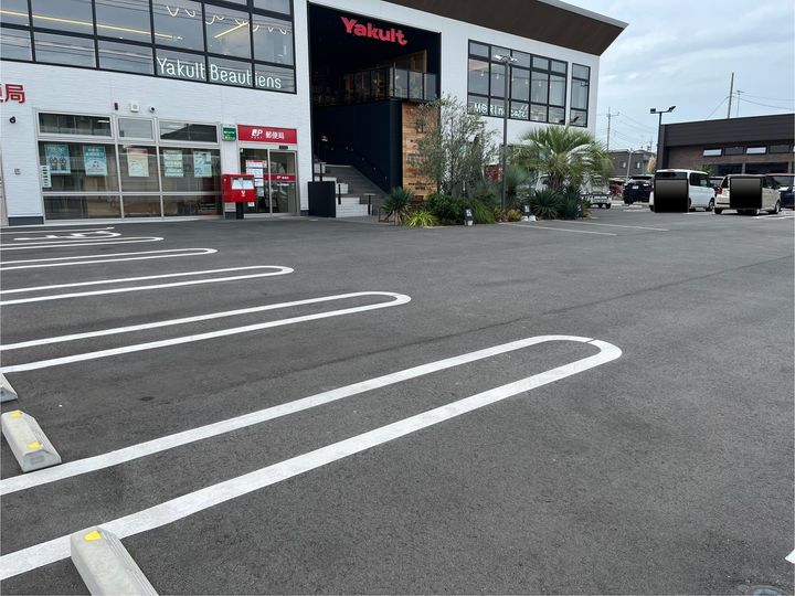 開店時間直前に駐車場に到着しました。駐車場は、敷地内の郵便局と共用のようですね。