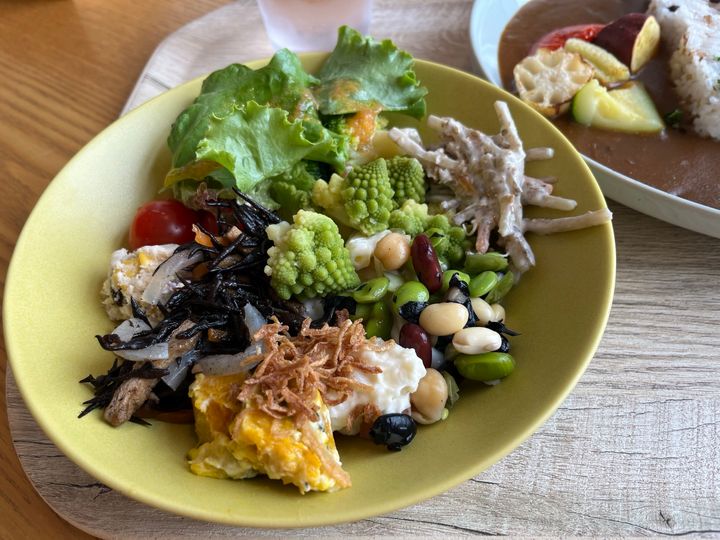 地元の新鮮野菜が沢山頂けるサラダバーに、健康になれそうなカレー。