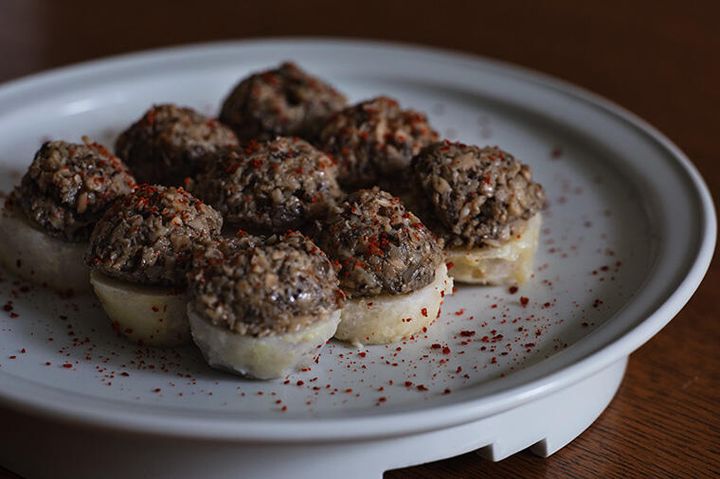 芳醇な香りの虜になる“蒸し里芋のきのこペーストのせ”