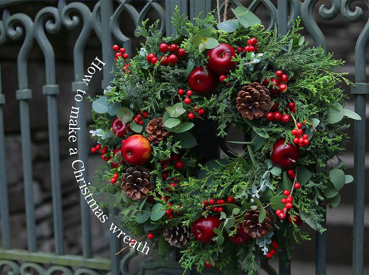 クリスマスには、生花ならではの生命力を取り入れたリースを飾りませんか? 今年は、深いグリーンの中に、新鮮なヒメリンゴと赤い実をふんだんにあしらって、王道のクリスマスカラーのみずみずしい華やかリースを作ることにしました。