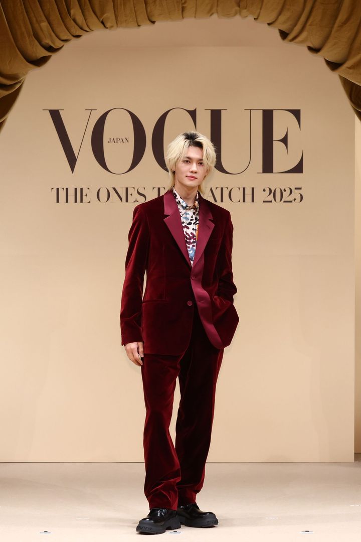 フェンディ(FENDI)のワインレッドのスーツに身を包み、「こんなすてきな賞を頂けて。お話をいただいたときは、本当に一瞬何のことか分からず、説明を受けてこんなすごい賞を僕が頂けるんだと、とてもうれしく思いましたし、今年1年頑張ってきてよかったと率直に思いました」と佐野勇斗は受賞の喜びを語った。個人としてもグループM!LKとしても大きな躍進を遂げた一年を振り返り、「個人的にもですけど、グループのM!LKの方でもありがたいことにたくさんの方々からお声がけをいただき、5人でいることがとても多くて。日々大変なスケジュールでしたが、とても濃厚で楽しい1年でした」とコメントした。