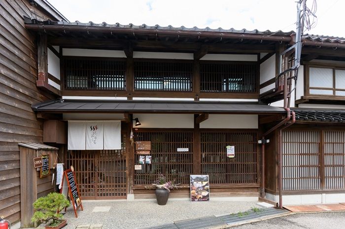 ひがし茶屋街の目抜き通りから徒歩約5分の場所に暖簾を掲げる「金沢おみそる倶楽部」。150年以上前に建てられたという金澤町家の建物をリノベーションしています。格子を施した窓が印象的で、ガラガラと引き戸を開けて入店するのも、どこか懐かしさを感じます。