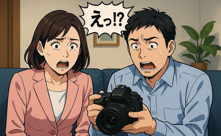 そして夕方、家に着き、神社で撮った写真を夫がわくわくしながら確認すると、「これ何やろ?」と言う夫。見てみると、写真に赤いハイヒールのようなものが映っているではありませんか! 思わず「キャー!!」と私は叫びました。