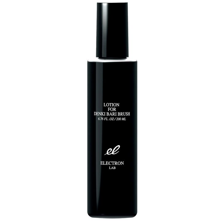 基本的に美顔器と同じブランドのローションを使用。頭皮にムラなくスプレーしてしっかり濡らすのがポイント。活性電子水™を配合した専用ローション。200ml¥6,380(GMコーポレーション)