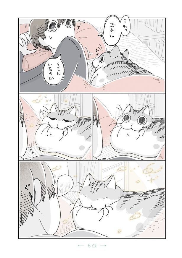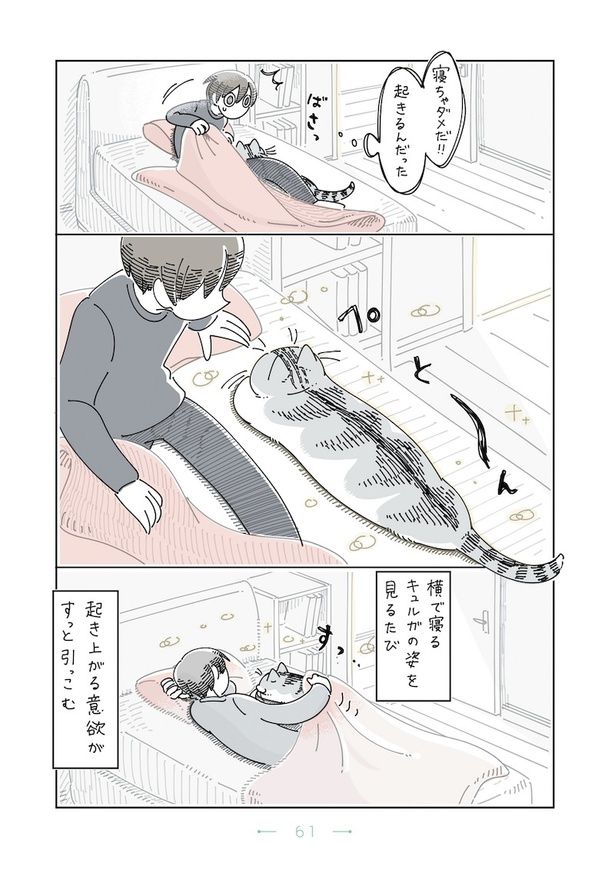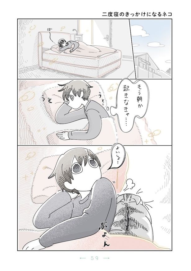 3. そろそろ起きなくちゃ! でも、隣で気持ちよさそうに眠る猫を見ていると…/夜は猫といっしょ4(49)