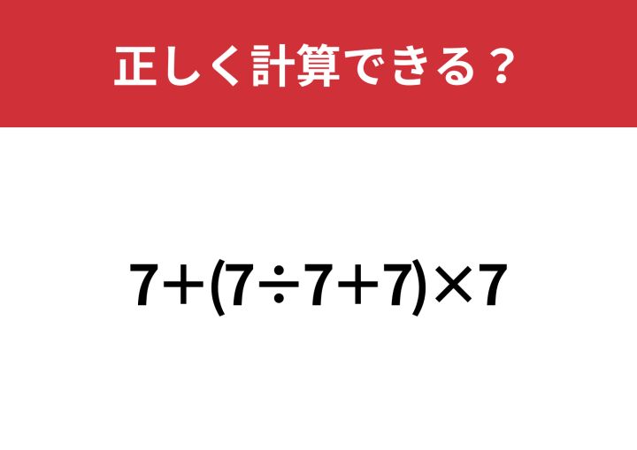 油断してると解けないかも!?「7+(7÷7+7)×7」正しく計算できる?