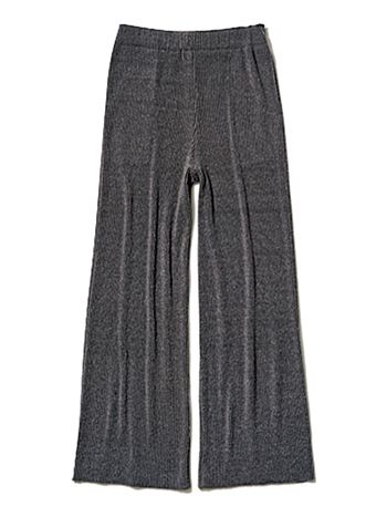 グレーニットパンツ/Gongdid Design(エリオポール代官山) 「立体感のあるハリのあるリブ生地。レッグラインを拾わずにすとんと落ちる縦落ち感によって、すらりとした姿がかないます」(岩田さん)