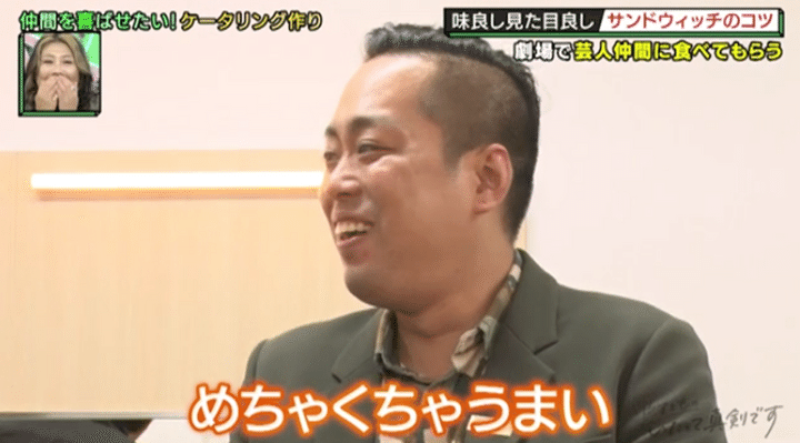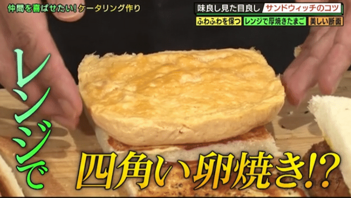 そのほか、カツサンド作りに欠かせない豚肉の下ごしらえや、電子レンジだけで作るフワフワ卵焼きのレシピなど、今すぐマネしたくなるプロの技が満載! これらをすべて押さえ、完成した東特製サンドウィッチにマンゲキ芸人たちの反応は?
