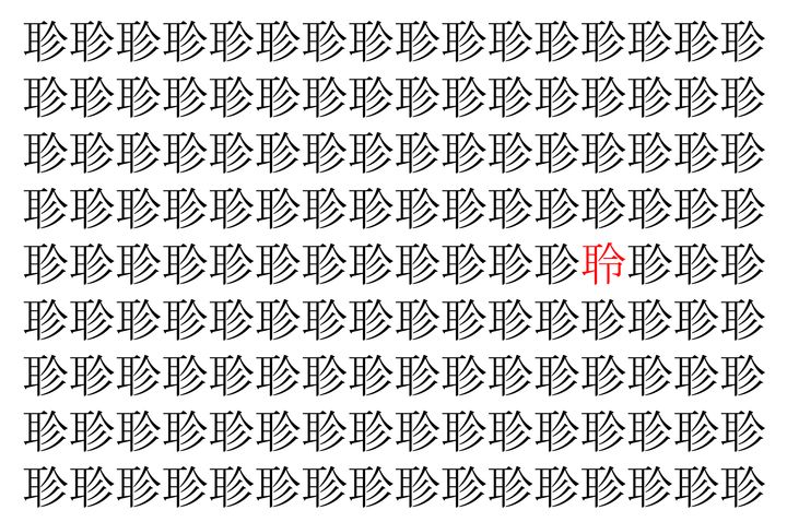2. 【脳トレ】「聄」の中に紛れて1つ違う文字がある!?あなたは何秒で探し出せるかな??【違う文字を探せ!】