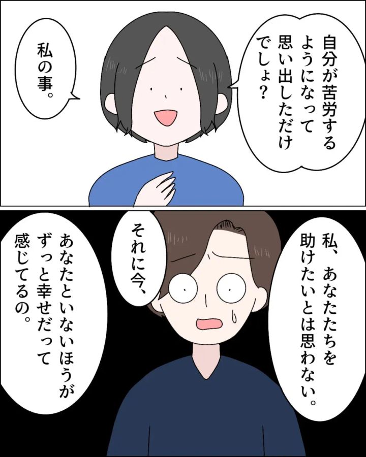 そして、「自分が苦労するようになって思い出しただけでしょ?私の事」そう言った後、「私、あなたたちを助けたいとは思わない。それに今、あなたといないほうがずっと幸せだって感じてるの」リナさんの言葉にケイさんは動揺しました。