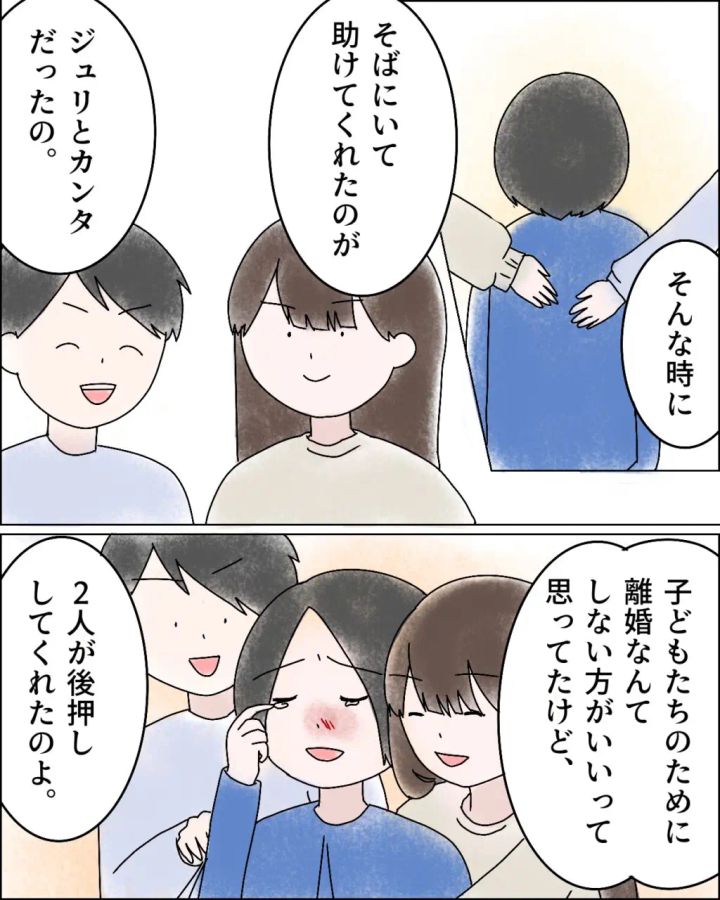 「そんな時に、そばにいて助けてくれたのがジュリとカンタだったの」リナさんがそう言うと、隣に寄り添うジュリちゃんとカンタくん。「子どもたちのために離婚なんてしない方がいいって思ってたけど、2人が後押ししてくれたのよ」そう言ってリナさんは涙ぐみました。
