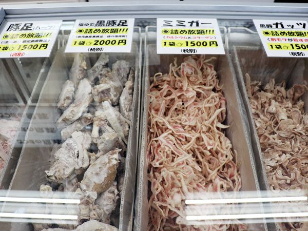 「ミミガー」(1500円)や「塩ゆで黒豚足」(2000円)なども詰め放題