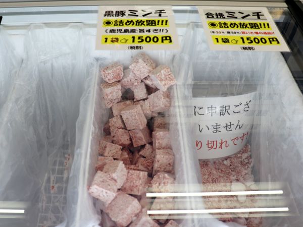 ミンチの詰め放題ってできるの?と不思議に思っていましたが、なんとミンチがブロック状に! これなら袋にも詰められます