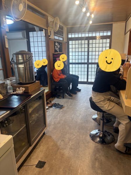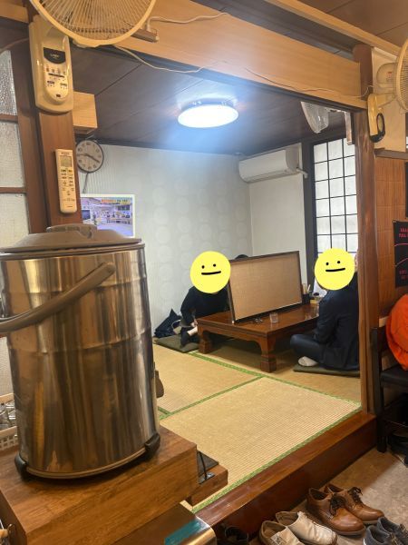 席は4席が横に並ぶカウンター席と、小上がりのお座敷席が2つ。座卓をかこんだお座敷席は1席に4名は座れそうです。