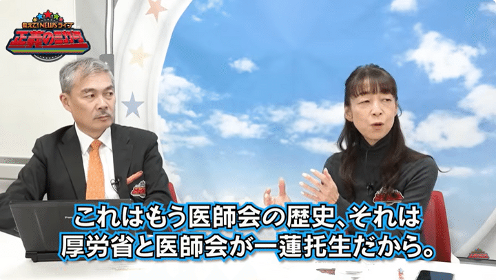 「えーっ?」と驚く東アナに、木村氏は「これはもう医師会の歴史。それは厚労省と医師会が一蓮托生だから」と、厚労省が医師会に逆らえない理由を語り始めた!