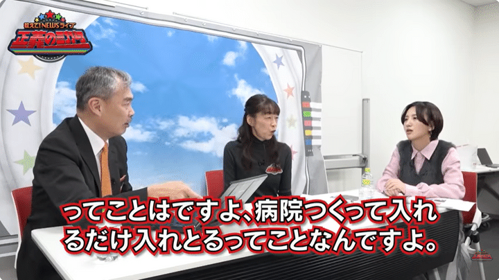 藤井氏は「行政が払ってるお金の半分以上が医療業界に流れてる。ということは半分以上が病院経営者とかお医者さんとか製薬メーカーとかに流れてるってことですよ」と説明する。
