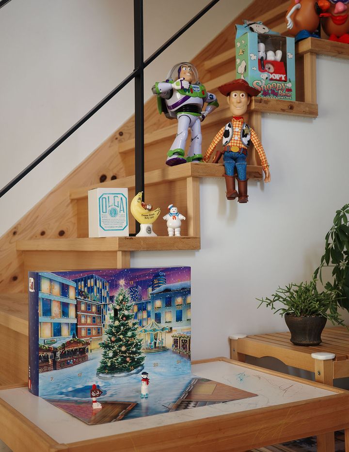 「リビングに置いてある息子用の作業台に置きました。階段を降りていちばん目につきやすい場所に置いたので、朝起きてすぐにアドベントカレンダーに向かっていき、開封していました!」