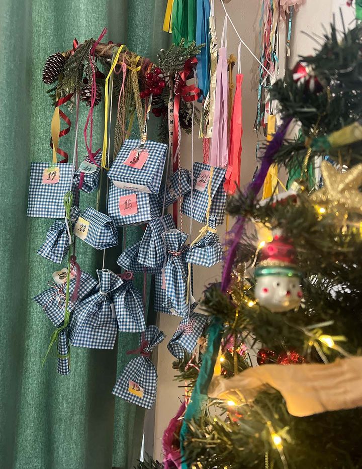 @yummy___good「私が子どもの頃にアドベントカレンダーを楽しんでいたので、クリスマスシーズンの特別なワクワクを娘にも体験させてあげたいと思い、つくり始めました。今回は、プレゼントっぽく包んで、ツリーの足元に置いたところがポイント。インテリアとしても◎。3歳、4歳の頃は1日に何個も開封して、数日でなくなってしまいましたが、5歳になったら1日1個ずつ開封していて、びっくり! 小さい包みから開けていて、長くワクワクを楽しみたい気持ちが伝わってきました。ただ、大きい包みから開けると想定していたので、予定が狂うなど毎年思い通りにはいかず(笑)。そういうハプニングも含めて楽しい思い出です」