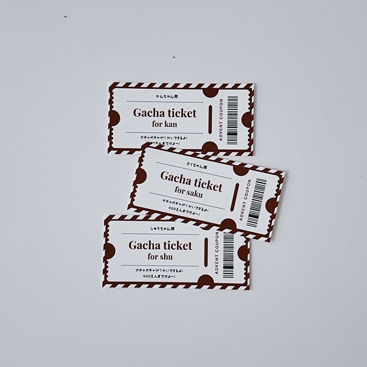 体験型のプレゼントもいつもとちょっと違う楽しみがあっておすすめ。ガチャガチャができるチケットをつくって入れるというアイディアも! 「ママとハグ」や「パパとゲーム」など親子で触れ合える内容を入れてみても◎。