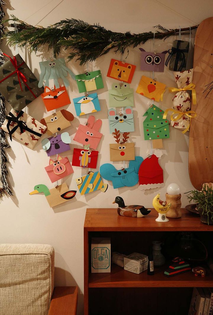 @2016214_「息子から『母ちゃんがつくるアドベントカレンダーがいい!』とリクエストがあったので、今年は手づくりして、お菓子やオモチャなどの中身もセレクトすることにしました。動物ひとつひとつを可愛いと愛でてくれて、家族で“どの動物が好きランキング”を発表したり、12月に入る前から飾って楽しんでいます」
