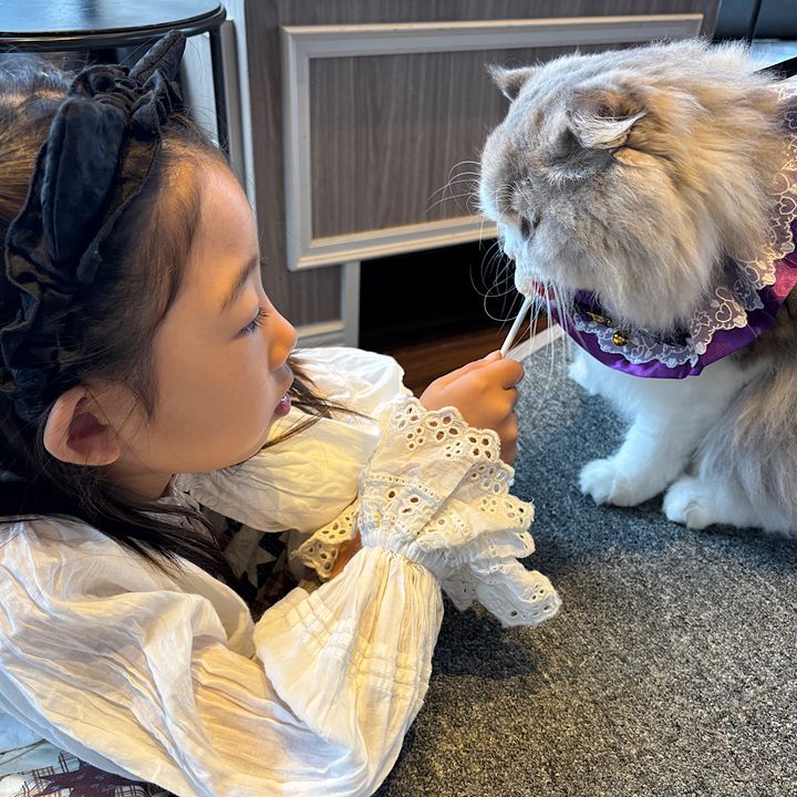 猫ちゃんの口元に運ぶと優しくペロペロしてくれるっ!!(犬との違いに驚き笑)