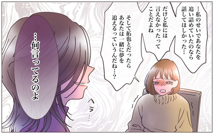 ストレスのため倒れた朋子に、朋子の夫は自分と子どもの命を優先してほしいと訴えた。朋子は拓也に無償で株式譲渡を行うことを決める。最後に、由香里になぜこのようなことをしたのか尋ねると、由香里は「被害者みたいな顔しないで」と言い出して…?
