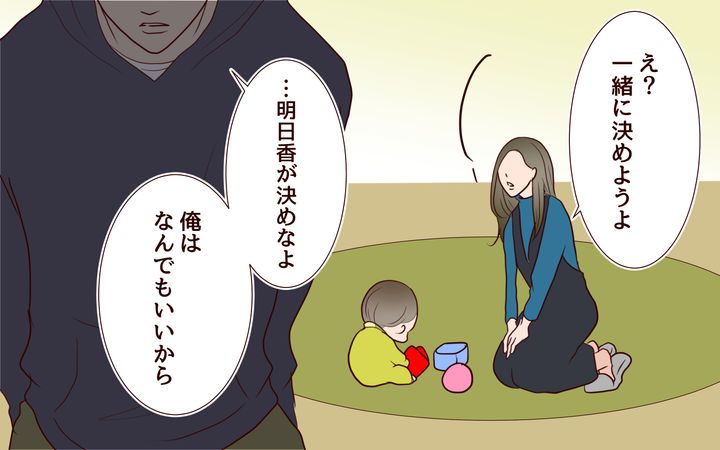聡から「これ以上、家事育児を手伝うのはきつい」と言われた明日香は、自分ひとりでやっていくしかないとますます孤独感を強めていた。そんななか、結婚記念日にホテルでのランチを提案する聡。赤ちゃん連れで楽しめるはずないし、そんなこともわからないの?と聡の見当違いの優しさを非難する明日香。「結婚なんてしなければよかった!」と言ってしまったことから、夫婦の間の亀裂はどうしようもないものになってしまう。