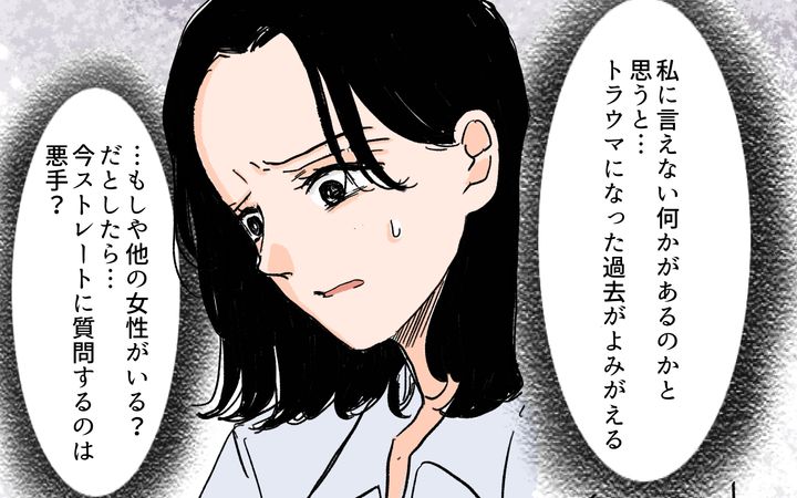 その日の夜、舞子は年末に有給をとって旅行でも行こうと夫にかまをかけると、気まずそうに「旅行は無理そう」と言われてしまい…。普段から隠しごとをするような人じゃなかったのに、一体何を隠してるの? 過去に男性から嘘をつかれて嫌な目にあったトラウマがよみがえる舞子は、目をそらす夫の姿を不安そうにみつめていた…。