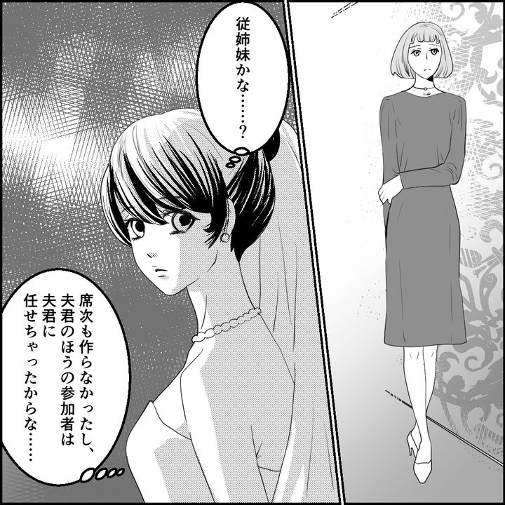 そして結婚式当日、アイさんが何気なく目撃した緑色のドレスを着た女性。友人からの祝福に、あらためて幸せを感じていたアイさんでしたが、夫とその女性が話している姿を目にしてしまうのです。