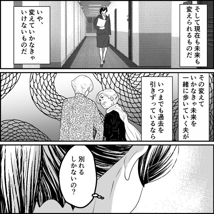 近所で元カノを見かけた義母から、「相変わらず可愛かった」と電話がかかってきた、と報告するユウキ。アイはそんなユウキが何を言いたいのか理解できず、ついケンカ腰になってしまう。するとユウキもそれに応戦し、結局言い争いに。初めて別々のベッドで眠り、朝ごはんも一緒に食べないなど険悪なムードが続くことになる。しばらくして、ユウキから「昨日はごめん」と謝罪のメッセージが届く。しかし、その言葉の後には「でもお前も悪いと思う。もう二度と元カレがかっこいいとか言わないでほしい」と自分の言動を棚に上げた内容が綴られており、アイはブチギレ。そこで、「今ならまだ結婚もやめられる」と核心をつくメッセージを返信すると…。