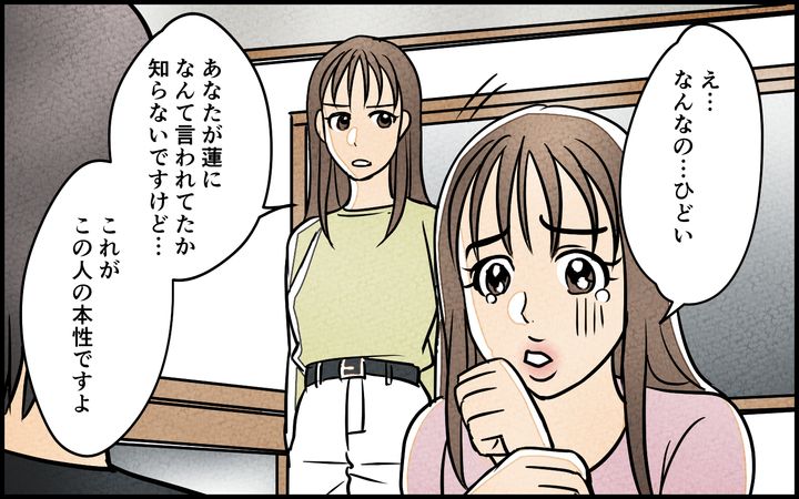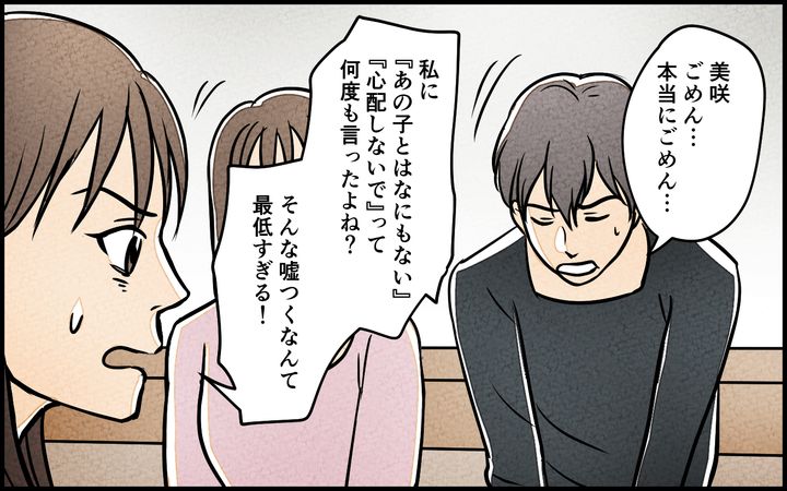 夫の女性部下・沙耶香のSNSでの匂わせ投稿が気になっていた美咲。「まさか夫はこの女性部下と…?」と、なんとなく嫌な予感はしていたが、いつも通り優しい夫の蓮を信じることにした。しかし蓮は美咲との夫婦関係をうまく続けながら、沙耶香とも関係を持っていた…。ある日美咲は、週末に実家に帰ると蓮に告げる。美咲のいない間、自宅に沙耶香を招き入れる蓮。沙耶香と二人で家にいると、実家に向かったはずの美咲が突然、帰ってくる。あわてて言い訳をする蓮だったが、美咲はもう蓮の両親も呼んでいた。「この状況をきちんと説明してください」という美咲の言葉に血の気が引いていく蓮は…?
