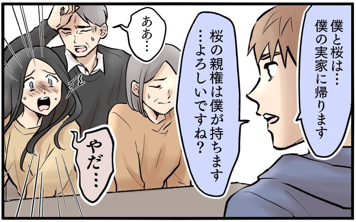 追いかけようとする絵美を必死で止めながら、義両親に連絡し、経緯を説明しました。