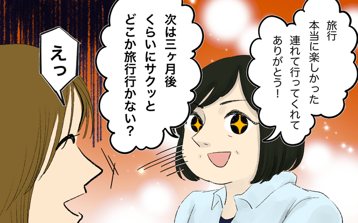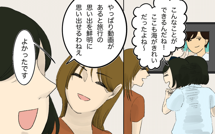 育休中のリフレッシュにと、夫と10ヶ月の息子との宮古島旅行を計画した玲。そこについてきた義母への度重なるプチストレスを抱えつつも、やっとの思いで乗り越えたのだが…。疲れ切った玲は夫に本音を話すと「今更言うなよ、不満があるならその場で言えばよかったのに」と言われ、理解されず後味の悪い旅行となってしまう。玲はよりいっそう、もう二度と義母との旅行には行かない!という意志を強く持つのだったー。