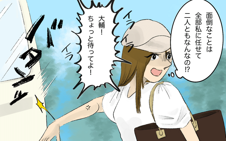 はじめての子連れ旅行は想像以上に気を遣うもので…。いつもに増して荷物も多いのに、準備している間にいつも先に3人で行ってしまうのです。私は夫にも義母にも苛立っていきました。