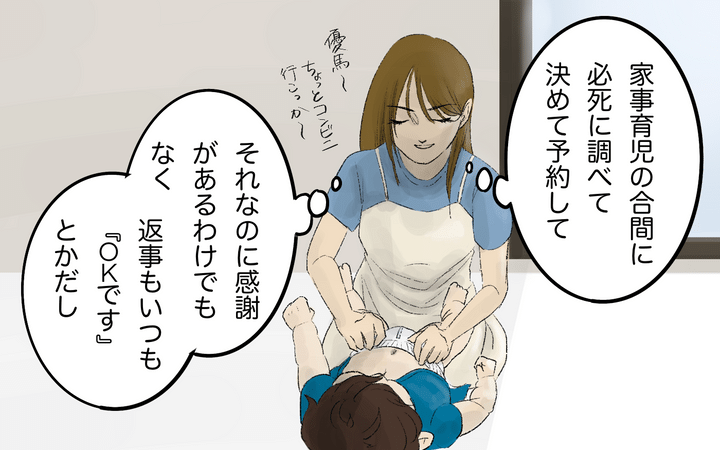 育児休業中の玲は、夫と息子との初めての家族旅行を楽しみにしていたが義母が急遽参加することになった。断れない上に義母の飛行機も自分のマイルから出すことになり、モヤモヤした気持ちはありつつも育児の合間を縫って旅行の計画をたてる。宿や行程を決め義母に送ると、「任せる」と言っていたはずなのに後から何かと注文され、先が思いやられると気持ちが沈んでいく玲だがー。