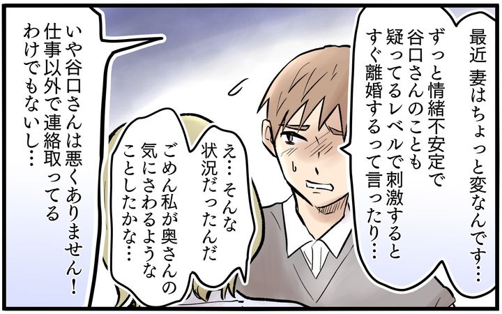 そして今度は大和のスマホを勝手にチェックし、検索履歴に残っていた「夜のお店」に行ったのだと決めつけて「汚らわしい」と罵り出して…。LINEや通話履歴もチェックしていた妻は、大和がそういう行為をしたと決めつけて譲らない。さらに「娘には二度と会わせない」と家を出ていこうとする。結局は絵美の誤解だったのだが、妻は謝ることはなく…。
