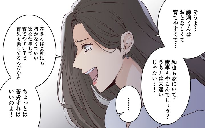 数日後、また連絡もなしに姪を預け、さらに「泊まらせて」と言い出した。義実家に連絡すると義母までも「家で仕事をしているなら預かって」と言ってくる。怒りが頂点に達した花は、義実家の問題に目を背け続ける夫に怒りをぶつけ、これ以上姪を放置するなら児童相談所に通報すると告げた。