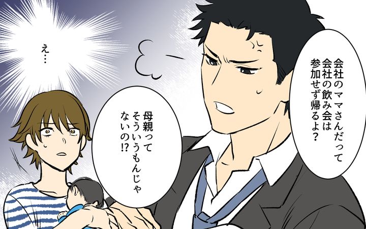 共通の友人の真奈に、拓実の飲み会に関する愚痴を聞いてもらった和葉。真奈の夫・敦史は育児に協力的で、真奈は子どもを見てもらって出かけることもできているらしい。和葉と娘のことは全く考えず、ひたすら飲み会に行ってばかりの自分の夫と比べてしまい、悲しい気持ちになる和葉。そんな和葉に真奈は「たまには拓実くんに子どもを預けて気分転換しよう」と提案してくれる。週末、ちょっとだけ飲みに行きたいと拓実に話してみると、拓実は「母親なのに子どもを置いて飲みに行くの!?」と反対してきて…。