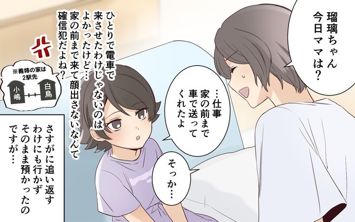 インターホンが鳴ったときにはすでに瑠璃ちゃんは家の前にひとりで立っていました。真夏の暑い中、家に入れないわけにもいかず…結局今日も預かることに。案の定義姉は電話に出ず、帰りの時間もわからないままでした。