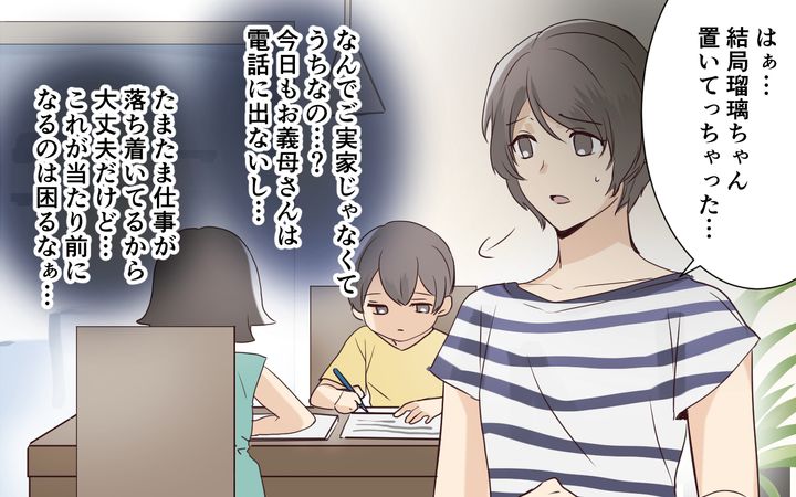 花さんは夫と小1の息子と3人暮らしのワーママ。リモート勤務で家で働いています。息子が小学生になり、夏休みの間は一緒に家で過ごそうとしていたら…突然義姉が娘を連れてやってきて!?