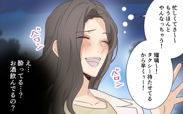 2. 「まさか…酔っ払ってる!?」連絡なく夜遅くに迎えに来た義姉は上機嫌で… <わが家を託児所扱いする義姉 4話>【義父母がシンドイんです! まんが】