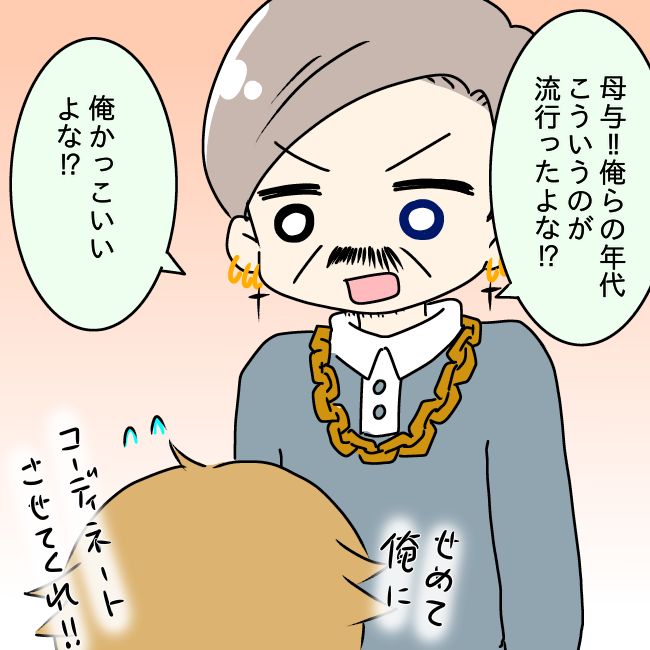 「俺カッコいいよな!?」と素直に聞いちゃう父親に、ちょっと笑ってしまいました。根はまっすぐな人なんですかね(笑)。とはいえ母親は、「恥ずかしいからそれで出歩くな」と釘をさします。