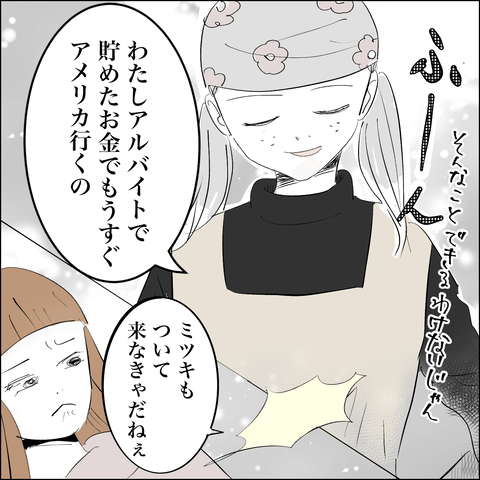 アサがアメリカに発つことを知ったミツキは捨て台詞を吐いてその場を去りました。
