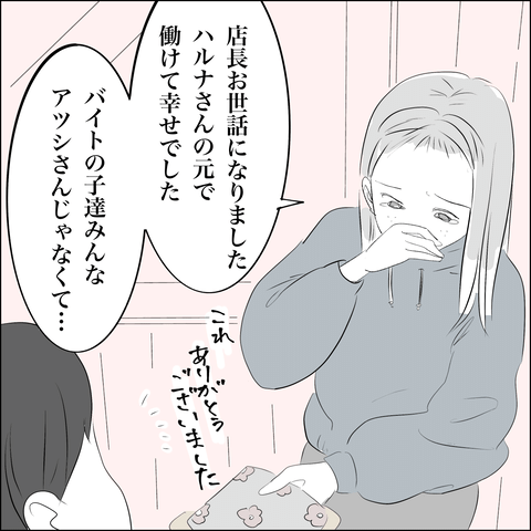 「バイトのみんなは店長のことを尊敬していた」とアメリカに発つ日にアサから告げられたハルナは勇気をもらい、新たな一歩を踏み出すのでした。