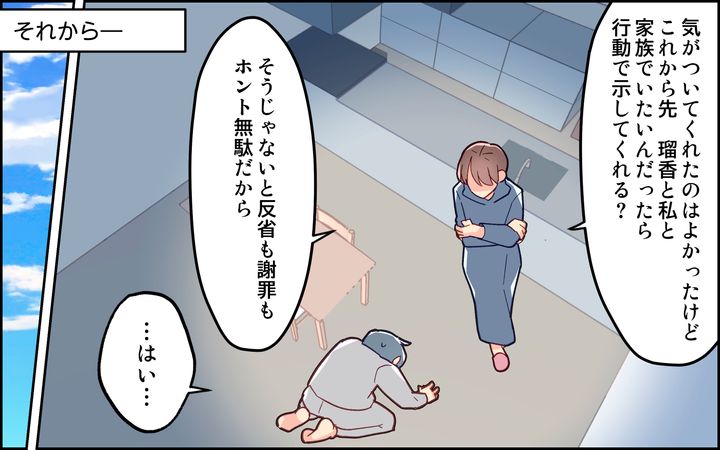 やっと気付いて本気で謝り出した夫でしたが、私としては今更感が否めません。何度も何度も伝えてきたのに、その度に受け流してきたのはこの人です。